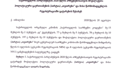 გიდასტურებთ პატივისცემას და საარჩევნო პროცესში თანამშრომლობის დიდი სურვილით გიგზავნით ჩემს გადაწყვეტილებას მაჟორიტარ დეპუტატად კენჭისყრის თაობაზე და წერილს: „2020 წლის…