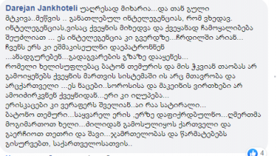 გიორგი სხირტლაძე ბატონო თემურ, მოგესალმებით (y) ..მინდა მოგიწოდოთ: არავითარ ეროვნულ პროექტს საქართველოში არ გაგაკეთებინებენ არც თქვენ და არც არავის, რადგან საქართველოც და მთელი…