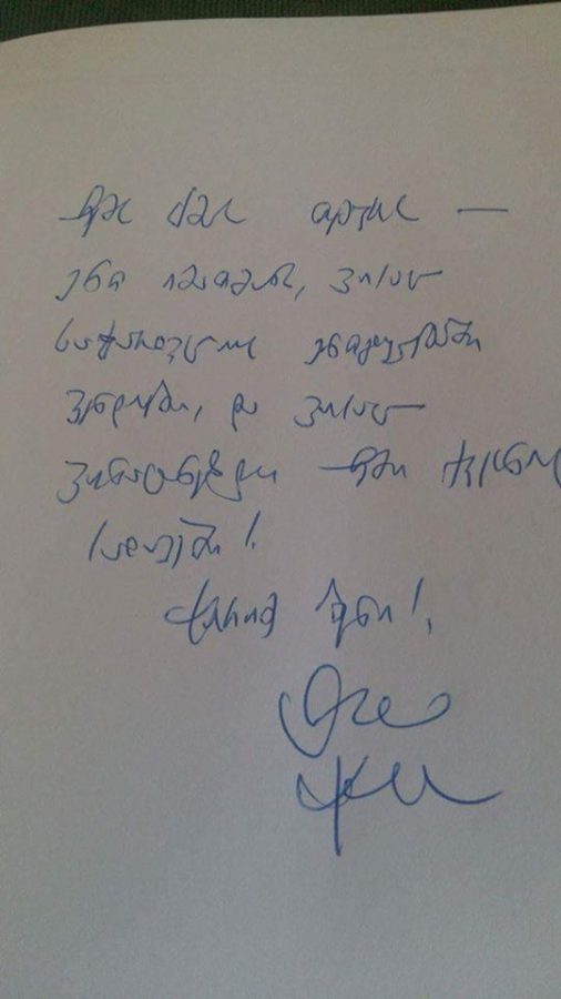 “ჩემს ძმას, თემურს – ერთ იმათგანს, ვისაც საქართველოს ერთგულებაში ვენდობი და ვისაც ვინატრებდი ჩემი ქვეყნის სათავეში! ჭირიმე შენი!
