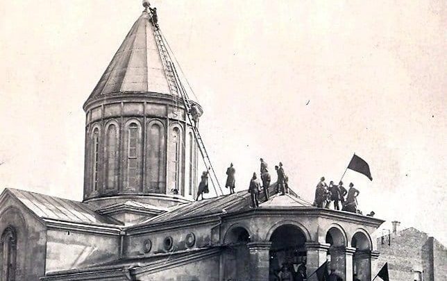 სურათზე ჩანს, თუ როგორ ანგრევდნენ და დაანგრიეს სობორო კომუნისტებმა და კომკავშირლებმა 1923 წელს, საქართველოს გასაბჭოების შემდეგ.